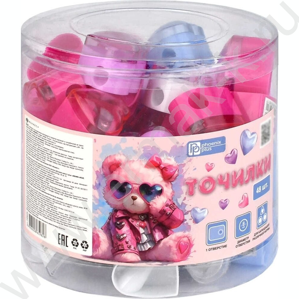 Точилка 1отв. пластик "Розовый мишка" /с контейнером /ассорти NEW