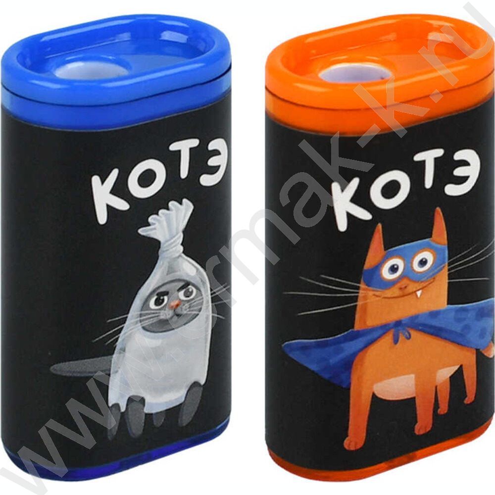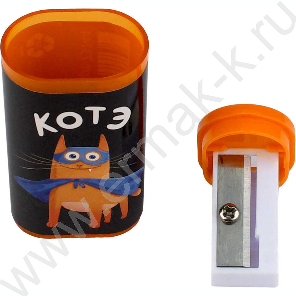 Точилка 1отв. пластик "Суперкот" /с контейнером /ассорти NEW