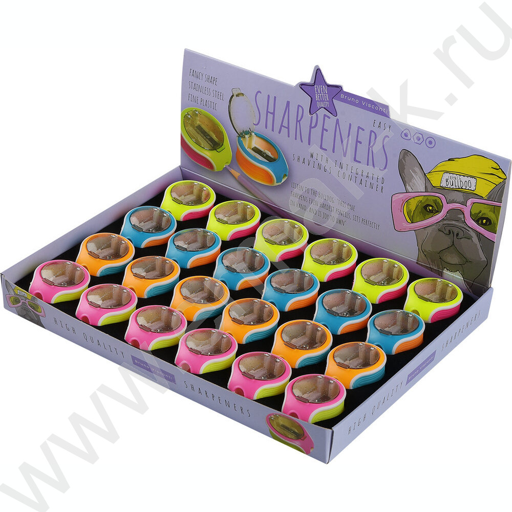 Точилка 1отв. пластик/с контейнером/ EASY.Бульдог ассорти NEW