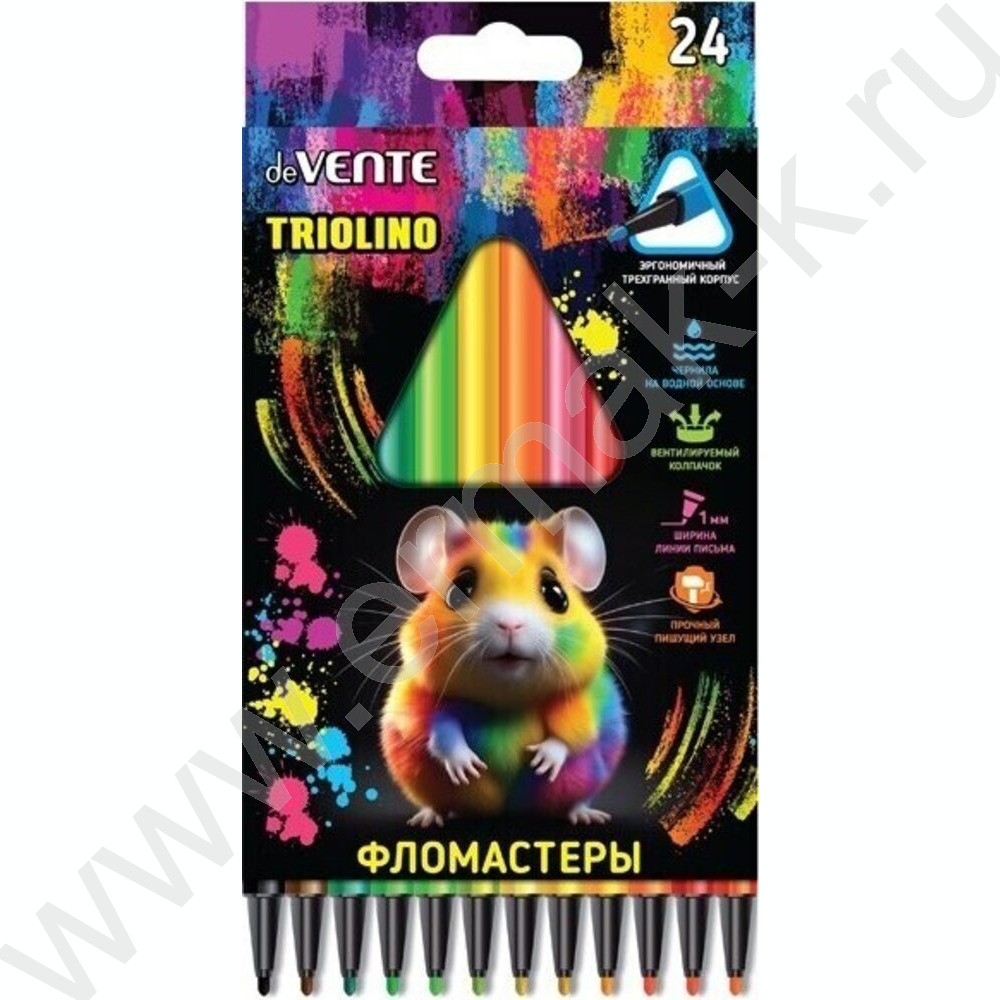 Фломастеры 24цв Triolino трехгранные, вентилируемый колпачок, к/кор с подвесом