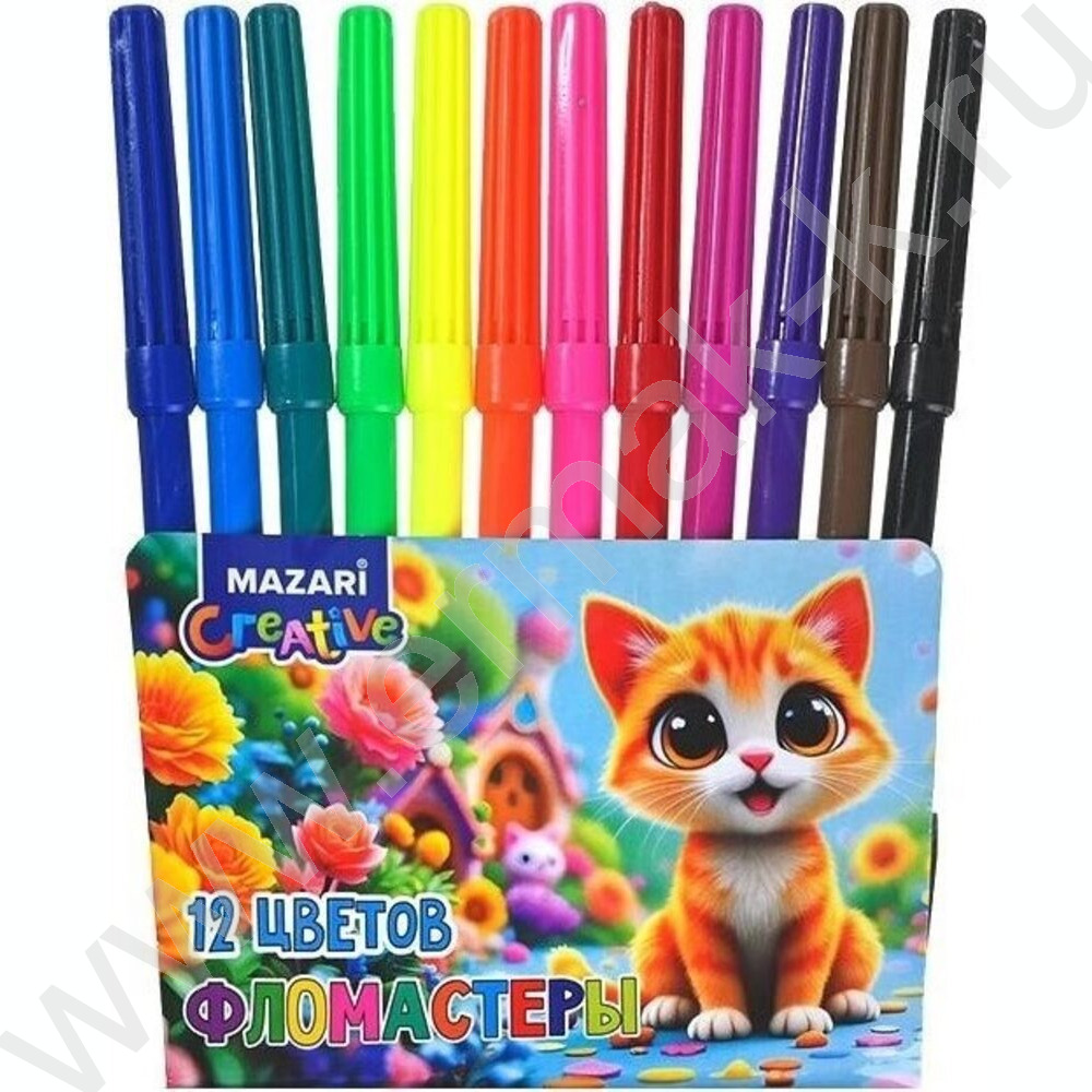 Фломастеры 12цв Котик вентилируемый колпачок,корпус круглый, ПВХ- упаковка с европодвесом