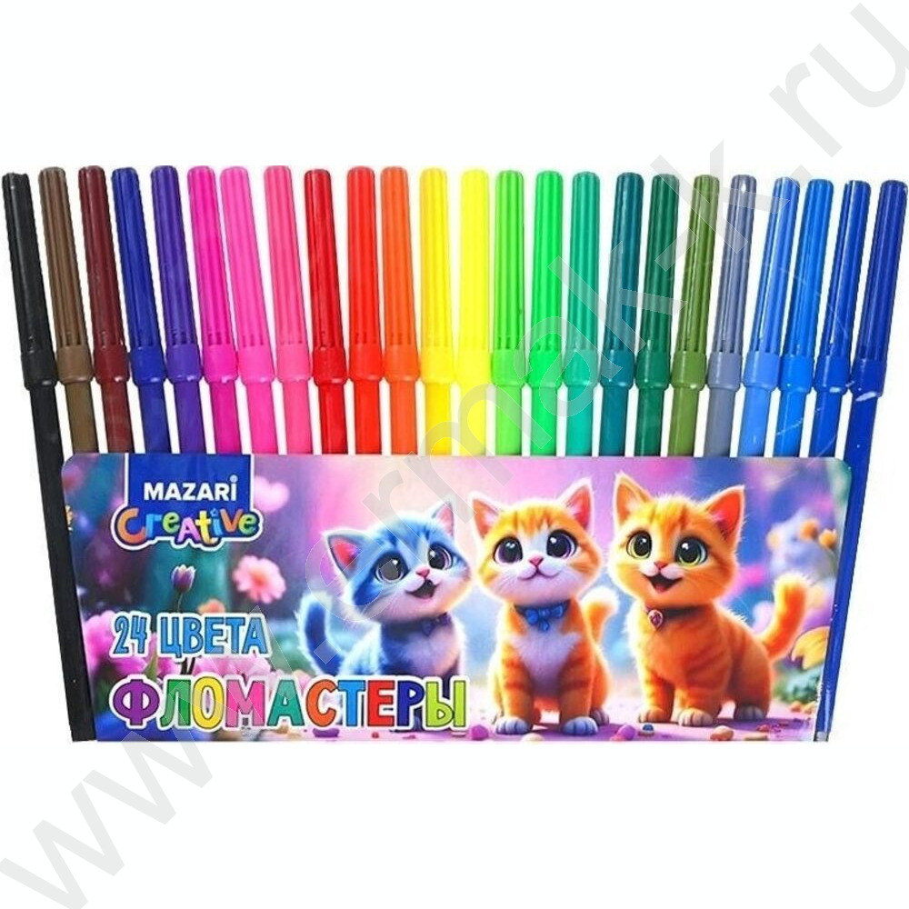 Фломастеры 24цв Котик вентилируемый колпачок,корпус круглый, ПВХ- упаковка с европодвесом