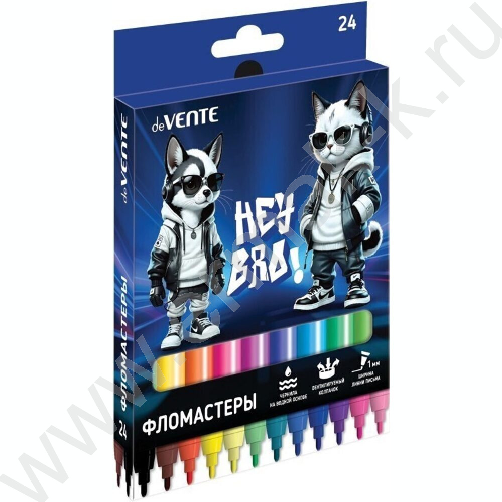 Фломастеры 24цв Hey Bro вентилируемый колпачок, к/кор с подвесом NEW