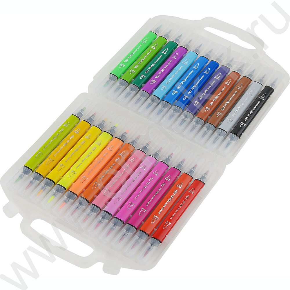 Фломастеры 24цв Bright colors /кисточки двусторонние в пл.пенале NEW