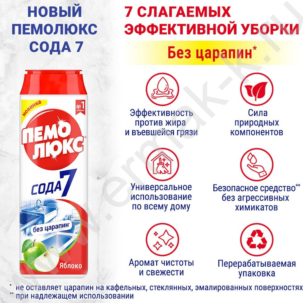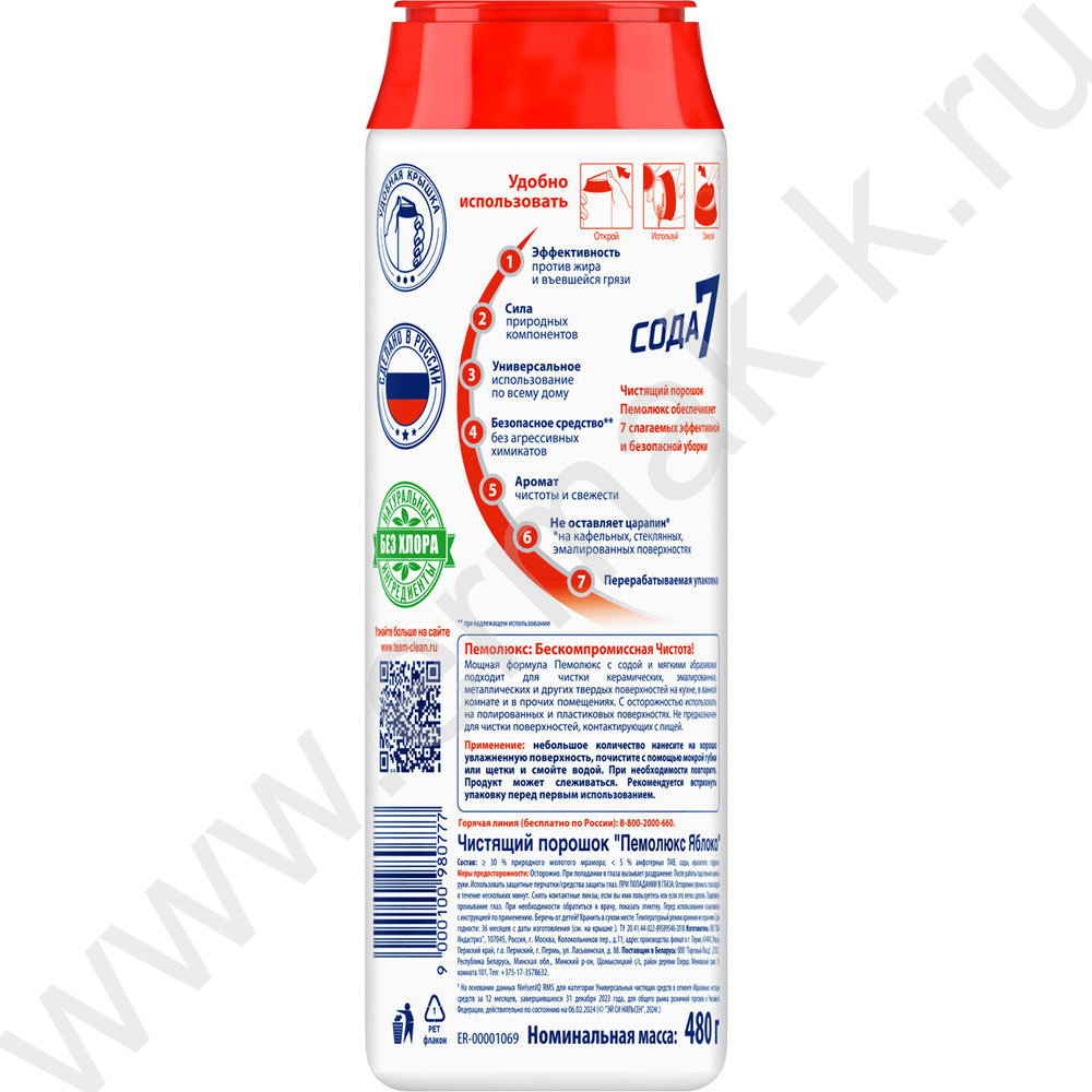Чистящее средство Пемолюкс 480г "Сода 5. Яблоко" /порошок