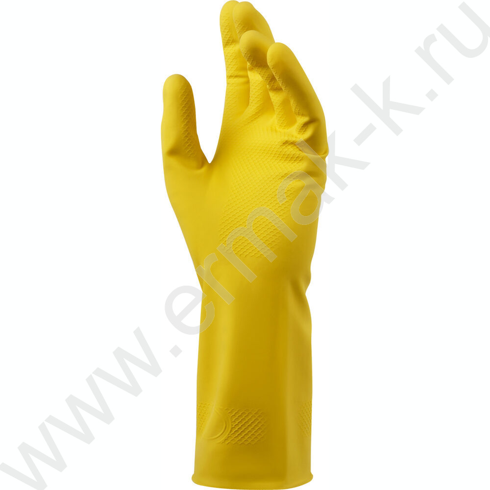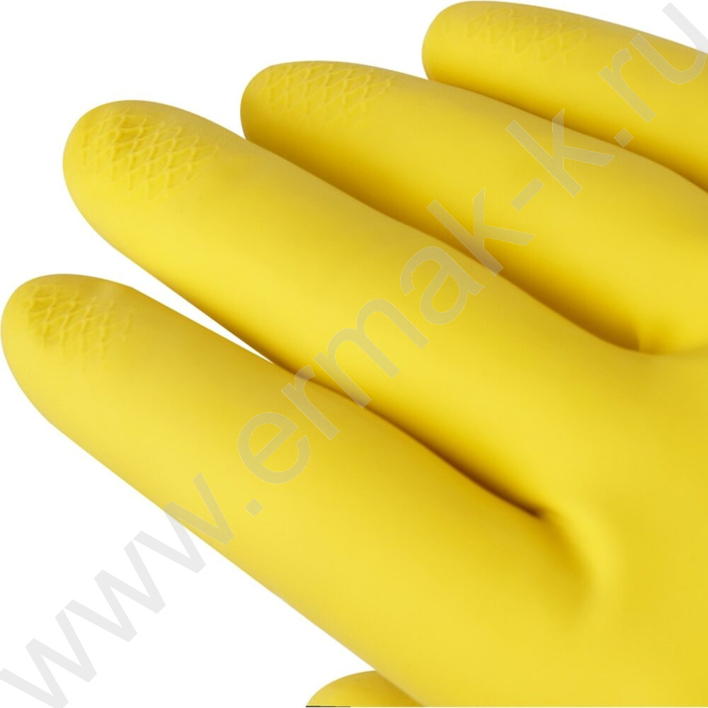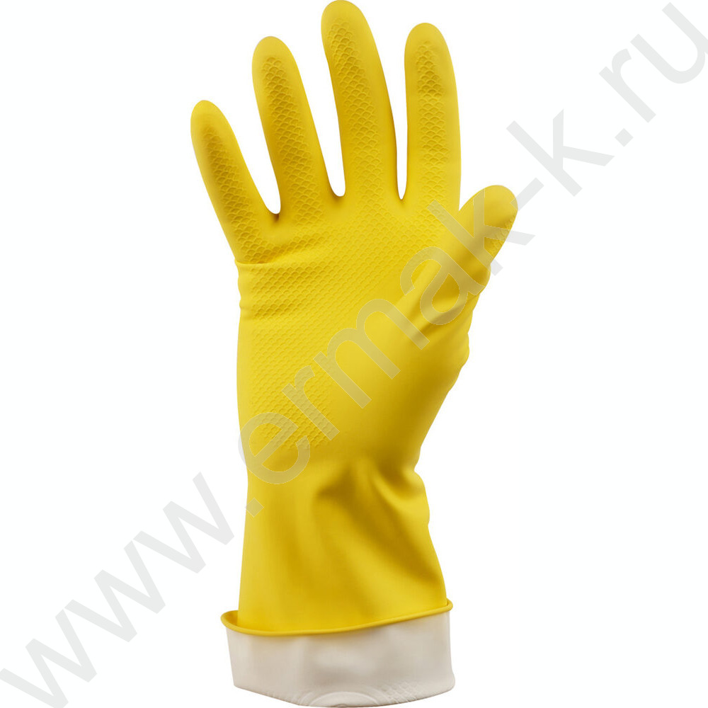 Перчатки резиновые с хлопковым напылением S "Стандарт+" /супер прочные, желтые