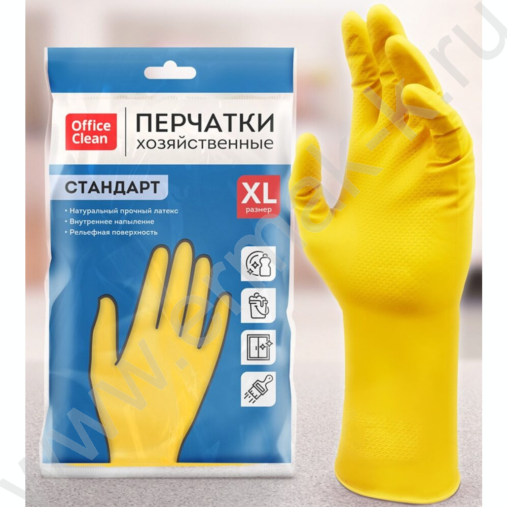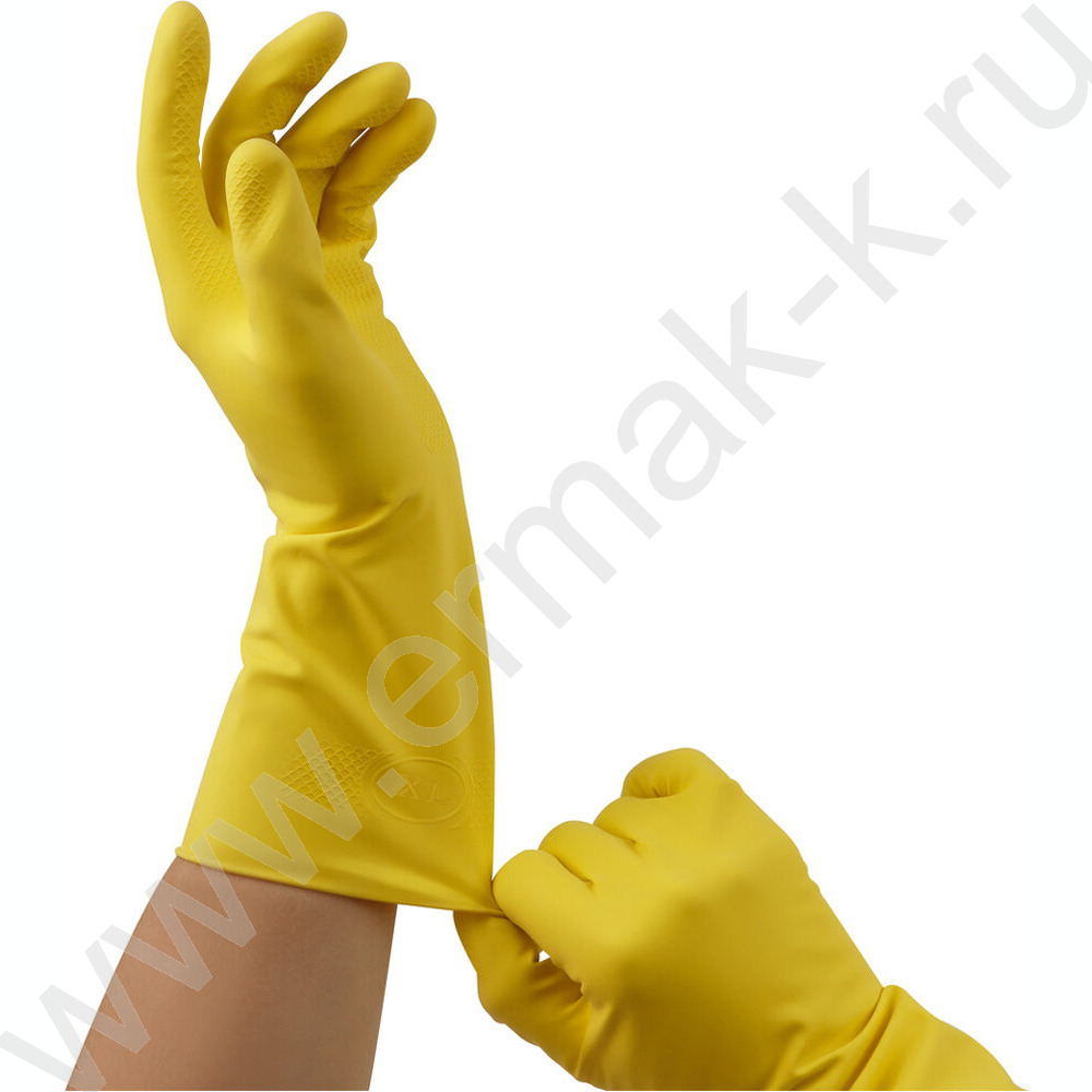 Перчатки резиновые с хлопковым напылением XL "Стандарт+" /супер прочные, желтые