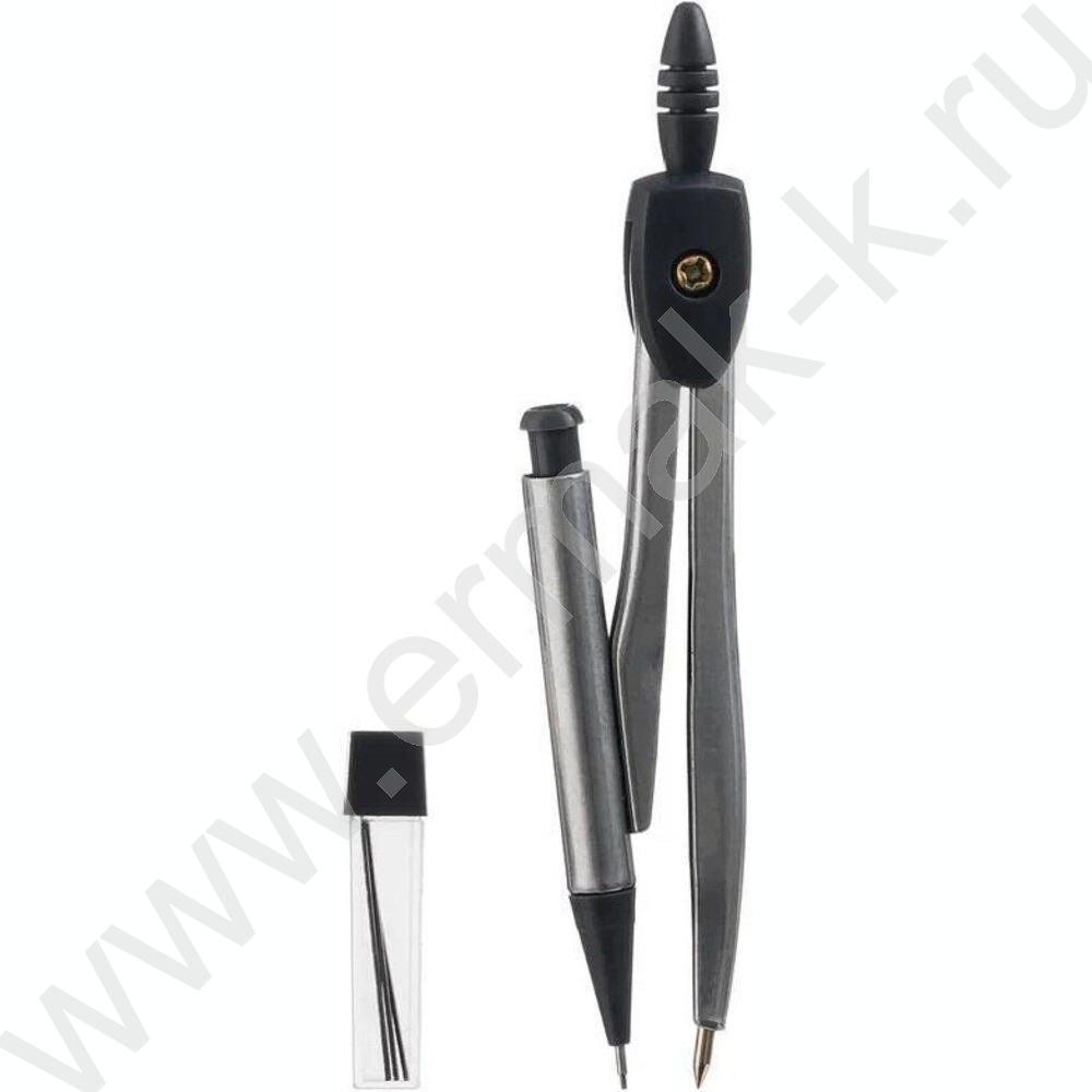 Циркуль метал.+ запасные грифели пл.футляр с прозрачной крышкой