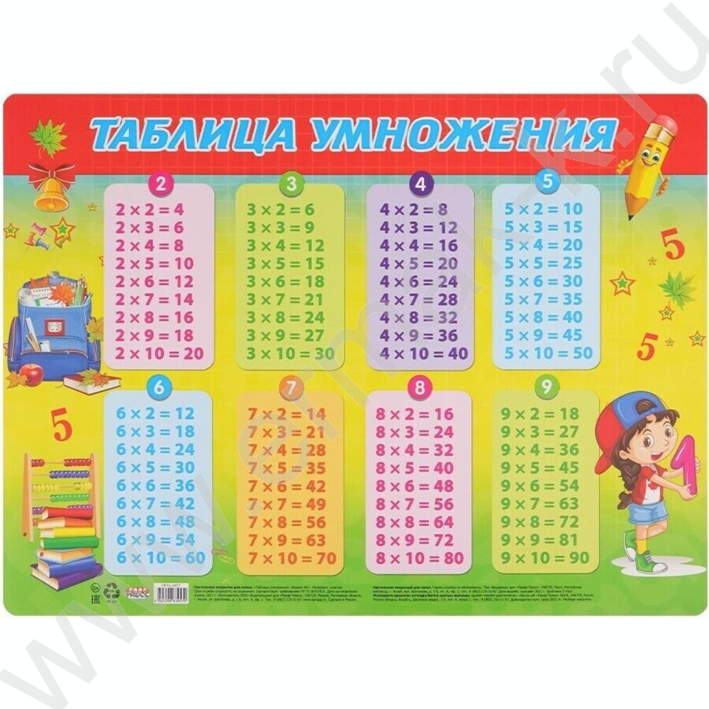 Накладка на стол для лепки А3+ Таблица умножения пластик