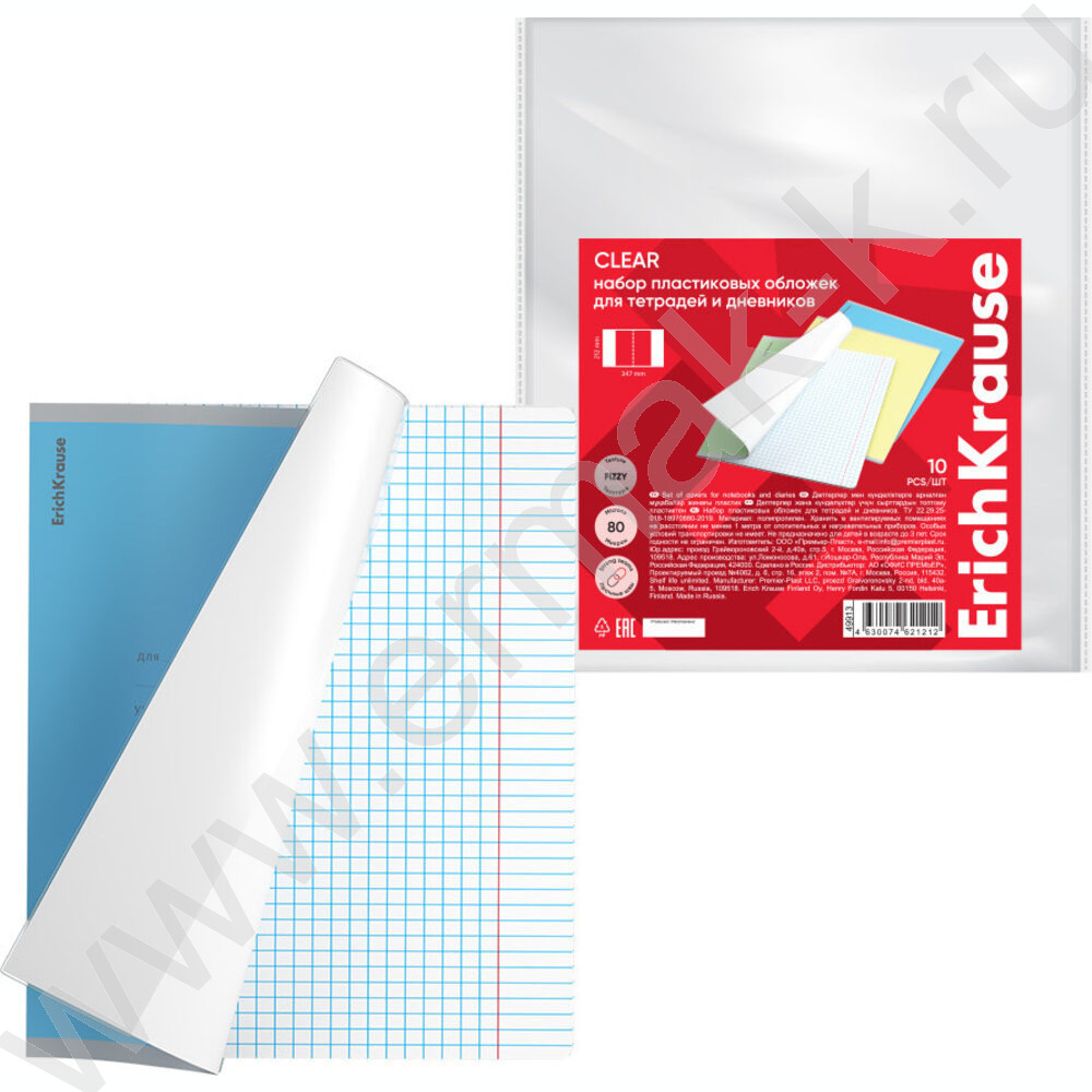 Обложка 212*347мм д/тетрадей и дневников "Fizzy Clear" 80 мкм прозр. /набор 10шт/