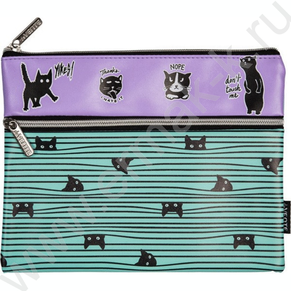 Папка для тетрадей A5 "Super Cats" иск.кожа, на молнии сверху, внешний карман на молнии
