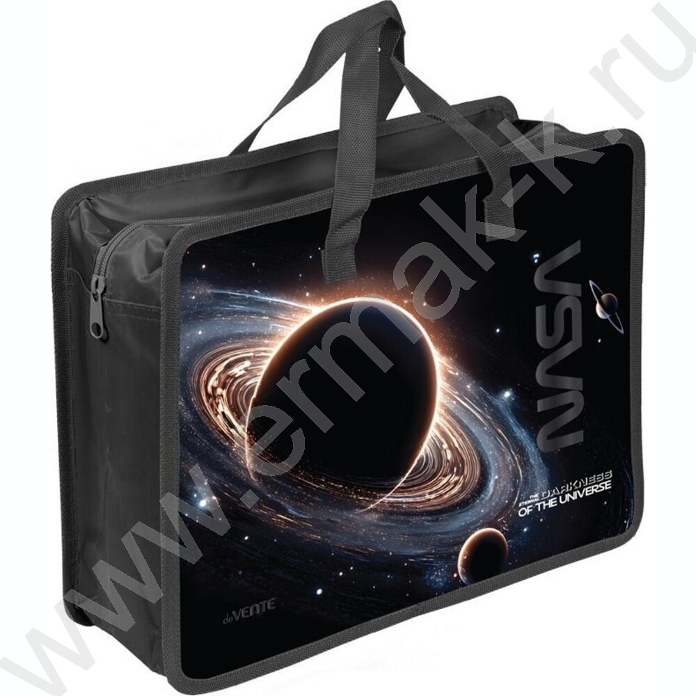 Папка для тетрадей A4 "Darkness of the Universe" текстиль, молния сверху, текст.расшир., с ручк NEW