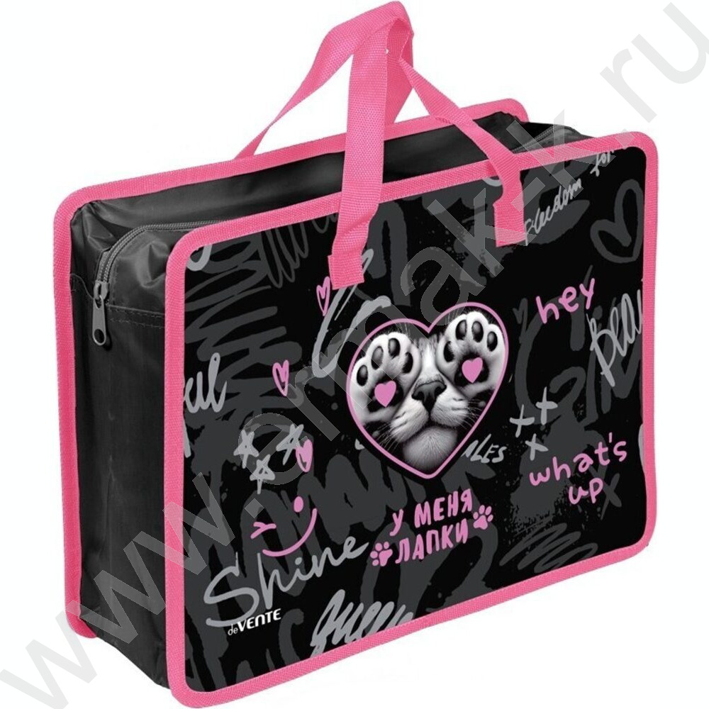 Папка для тетрадей A4 "У меня лапки" текстиль, молния сверху, текст.расшир., с ручками NEW