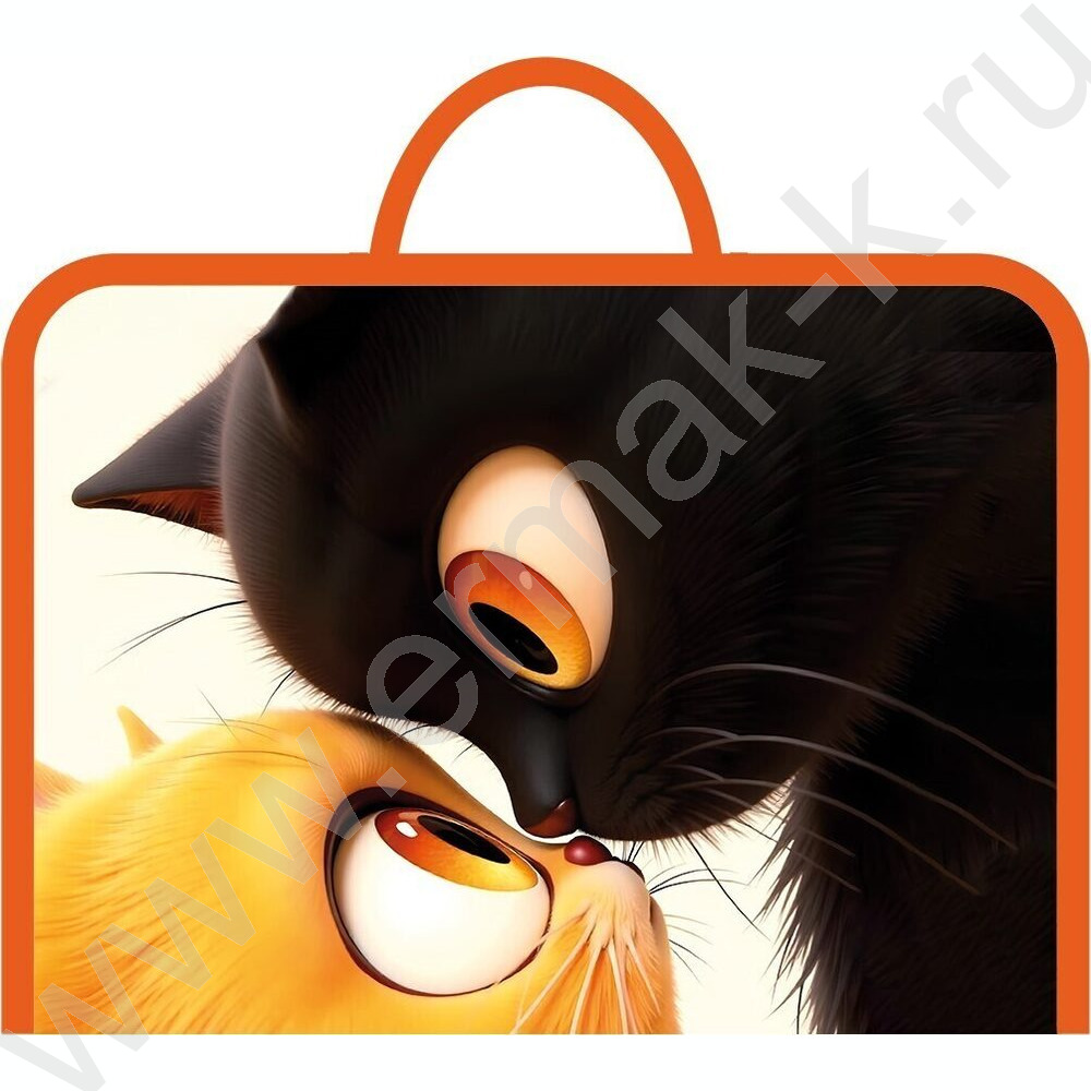 Папка д/труда А4 пластик, молния вокруг, ручки-тесьма Два кота