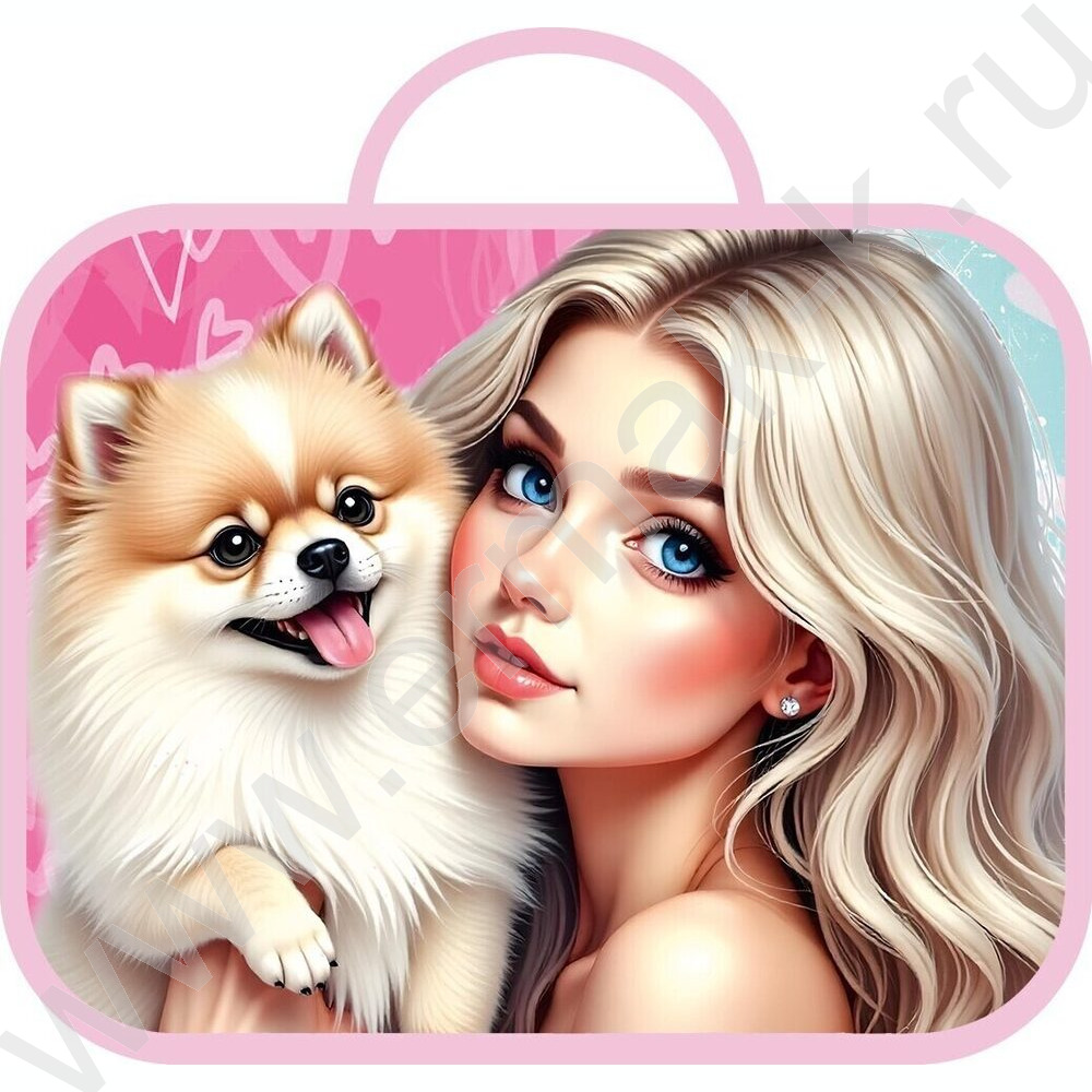 Папка школьника А4 ткань, широкая, с ручками+твердое дно "Девушка с пёсиком" NEW
