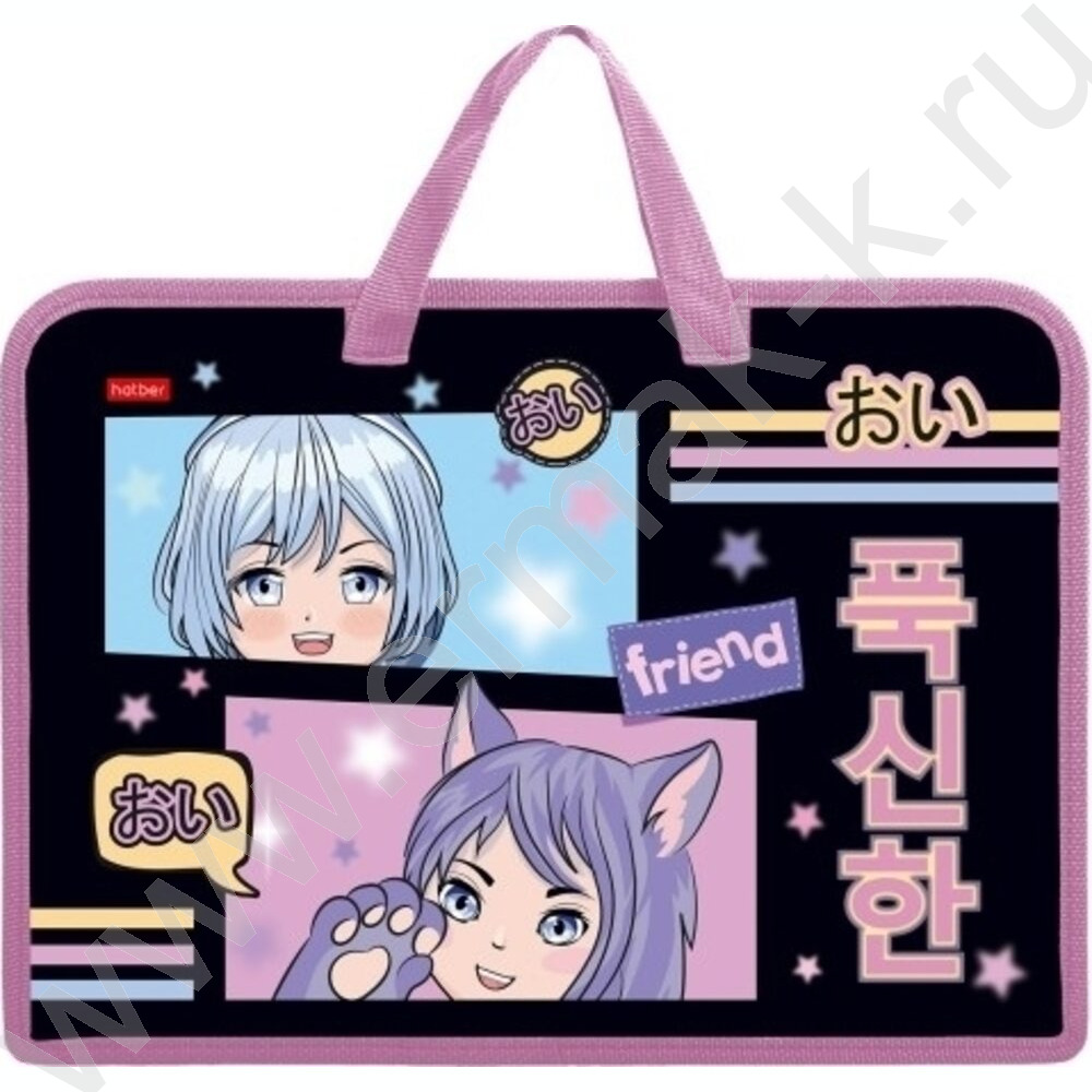 Папка д/тетрадей А4 пластик на молнии 1 отд.с ручками "АНИМЕ"