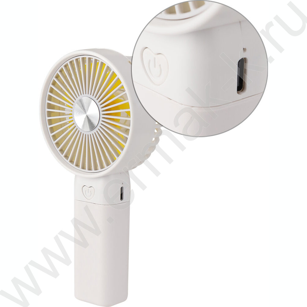Вентилятор ручной с подставкой и зарядкой (USB) 3 уровня регул.7*8.5см белый NEW