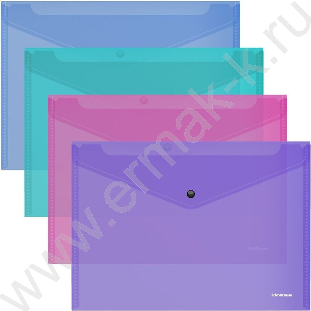 Папка-конверт на кнопке А4 Glossy Vivid полупрозрач. /ассорти