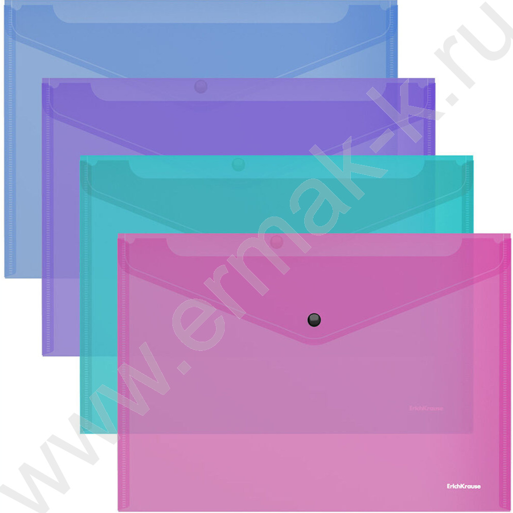 Папка-конверт на кнопке А4 Fizzy Vivid полупрозрач. /ассорти
