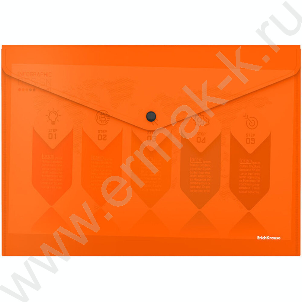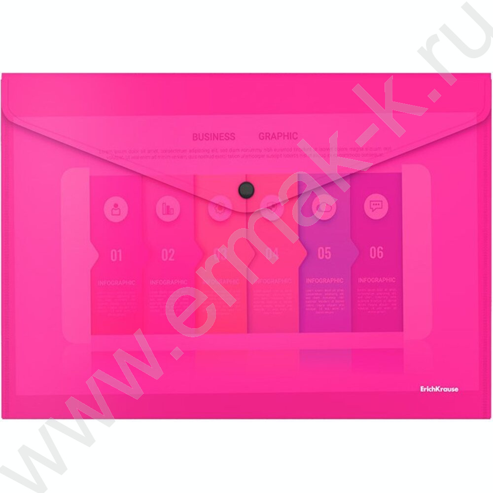 Папка-конверт на кнопке А4 Glossy Neon п/прозрач. ассорти