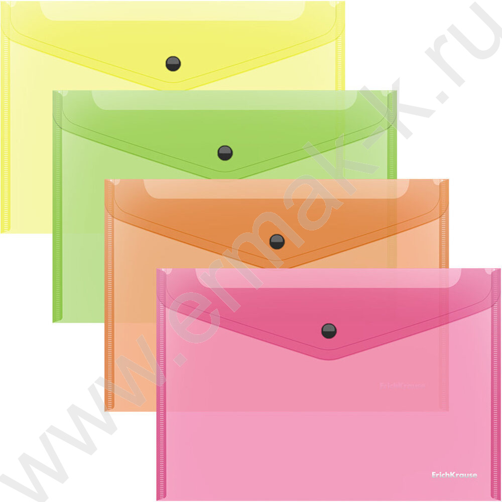 Папка-конверт на кнопке B5 Glossy Neon полупрозрач. /ассорти