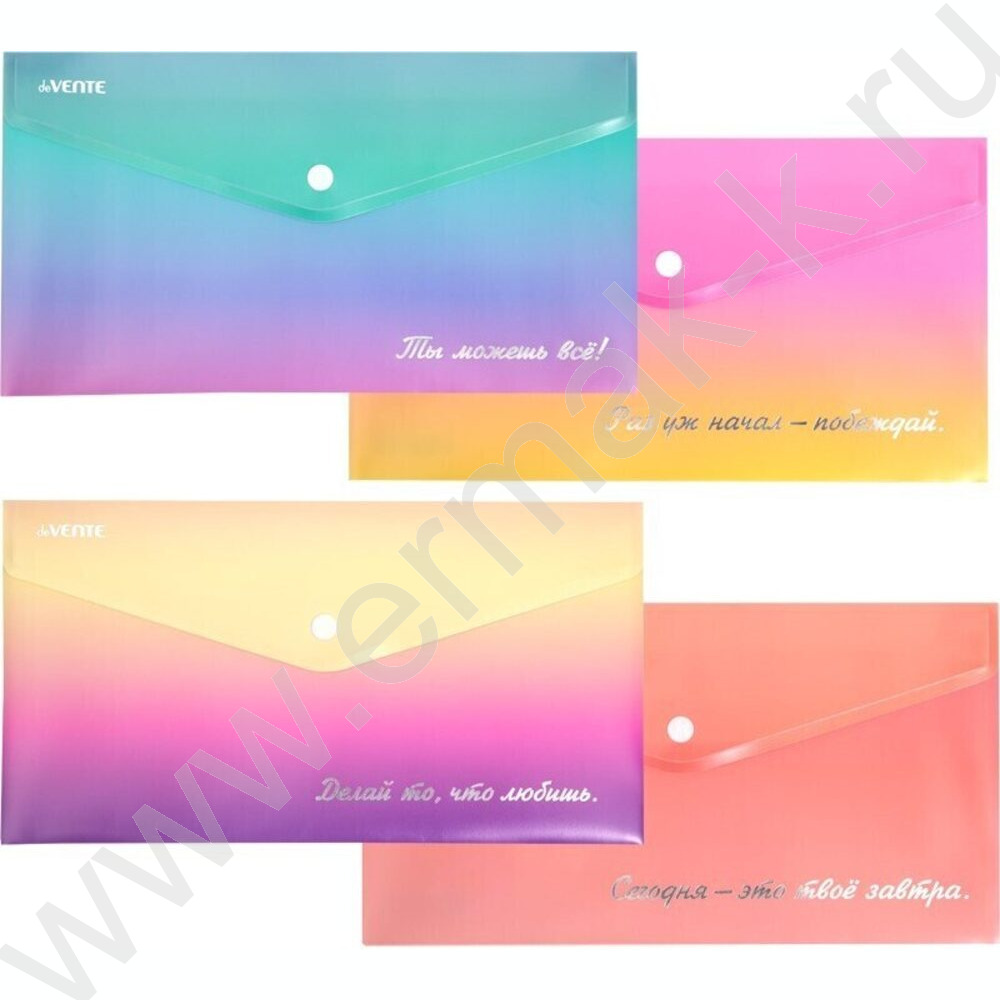 Папка-конверт на кнопке Travel-size DL "Degrade" с рисунком, тиснение фольгой, 180мкм /ассорти