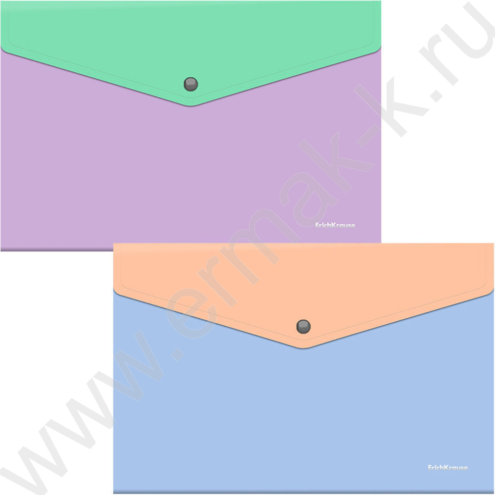 Папка-конверт на кнопке А4 Matt Pastel Bloom, с дополнительным карманом /ассорти