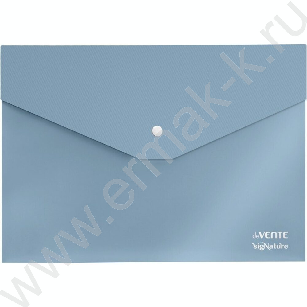 Папка-конверт на кнопке А4 sigNATURE фактура "ткань" мат. прозрарач. 350мкм, сумеречно синяя