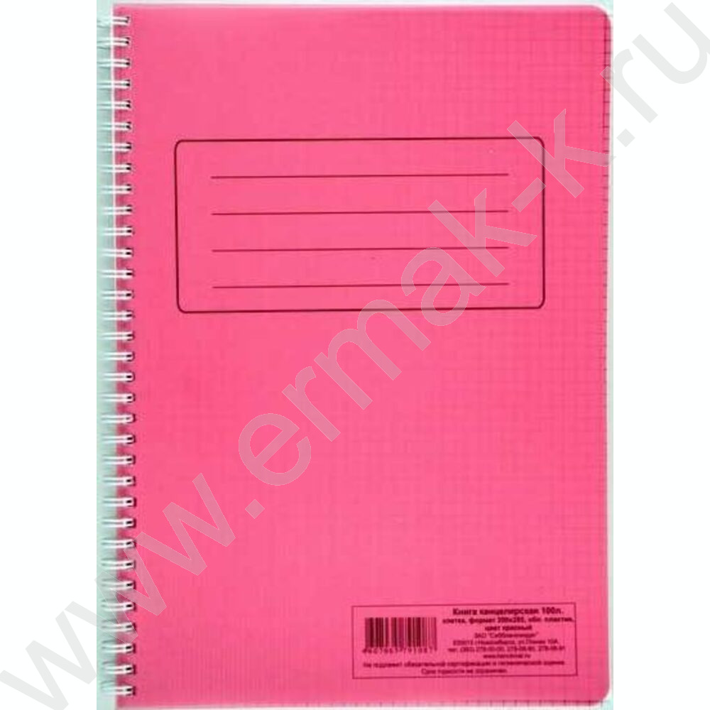 Книга Канцелярская 100л клетка красн. пластик/спираль