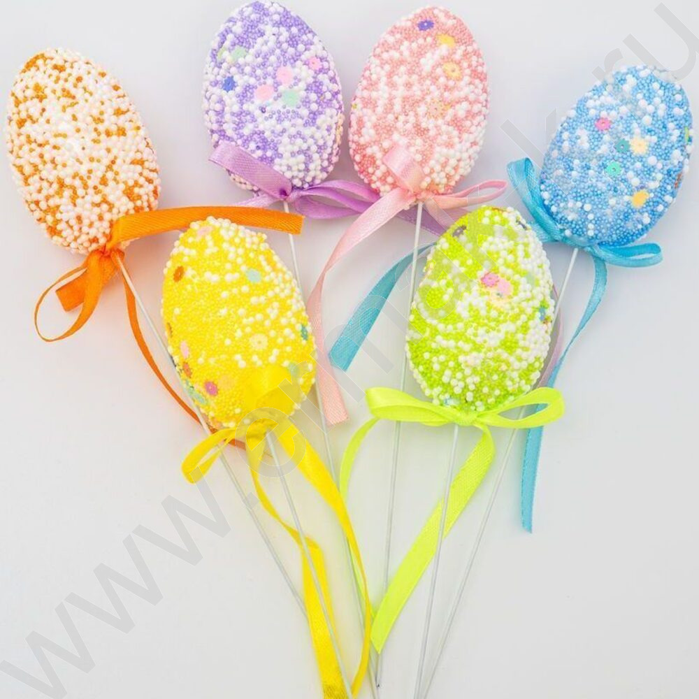 Яйца пасхальные на палочке, 4*6см, обсыпка 6 шт/уп