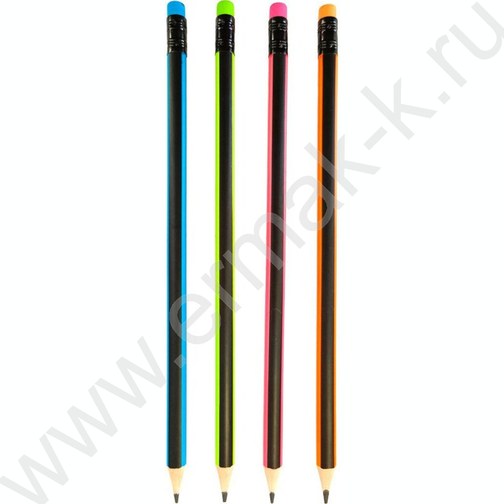 Карандаш ч/гр с ластиком HB "Triolino" 2мм, трехгранный, заточ., корпус черный с цветн. полоскам